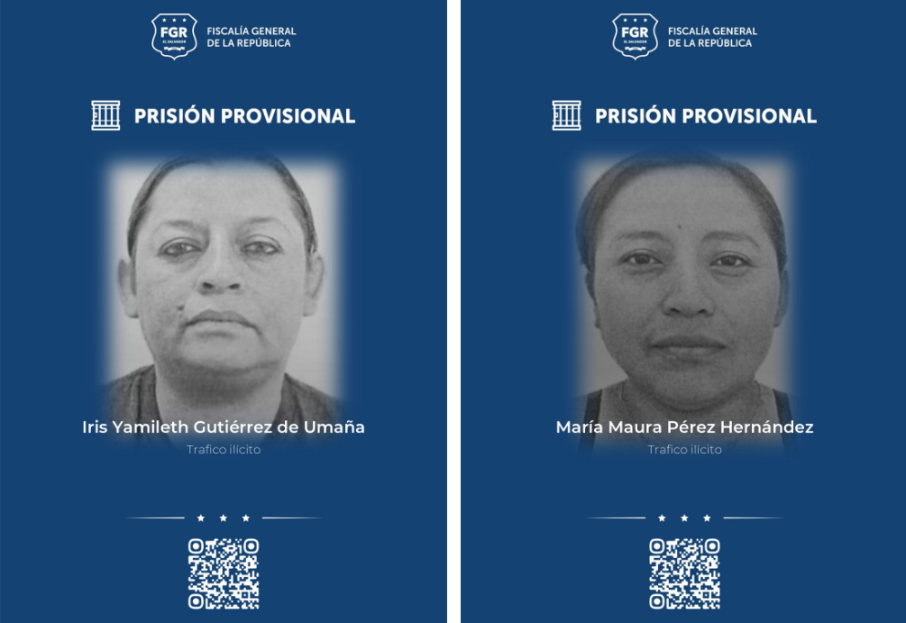 En un contundente golpe a las estructuras de narcomenudeo en el oriente del país, la Fiscalía General de la República (FGR) logró que Iris Yamileth Gutiérrez de Umaña y María Maura Pérez Hernández sean enviadas a prisión provisional. Ambas son procesadas por el delito de tráfico ilícito tras ser sorprendidas con un importante cargamento de sustancias prohibidas.
