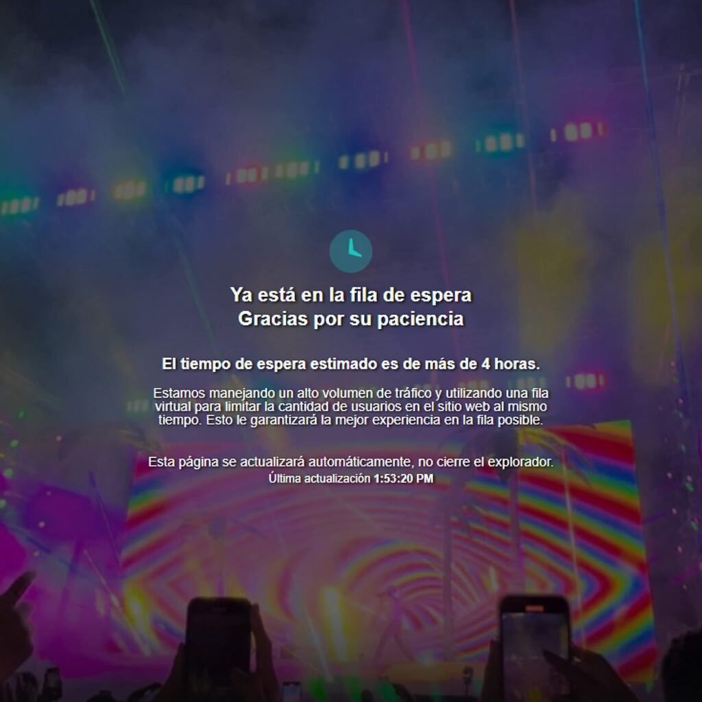 La expectativa por los conciertos de Shakira ha provocado una alta congestión en las plataformas de venta de boletos, generando filas virtuales que superan las cuatro horas de espera, según reportaron numerosos usuarios en redes sociales.