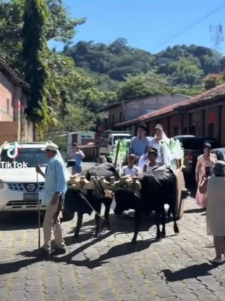 Una boda celebrada en Jocoaitique, Morazán, se volvió especial por rescatar una de las tradiciones más auténticas del oriente del país. En la secuencia de fotografías que circula, se observa a la novia acompañada de su padre, quien la lleva hasta la iglesia sobre una carretera y en una yunta de bueyes, marcando un momento cargado de simbolismo y arraigo cultural.