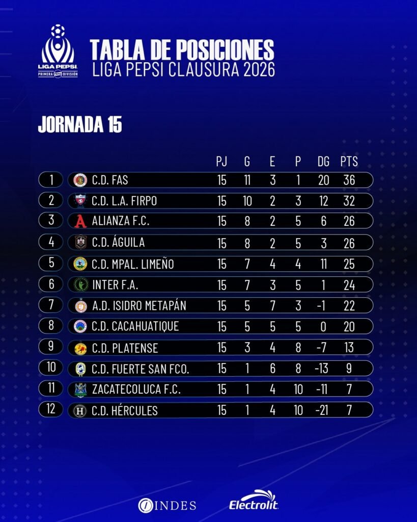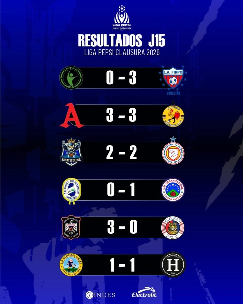 Con estos resultados, el torneo entra en su etapa más crítica. Águila recupera la confianza y el fútbol, demostrando que está listo para pelear por el título, mientras que sus rivales directos ceden terreno en una jornada 15 que dejó las emociones a flor de piel en todo el país.