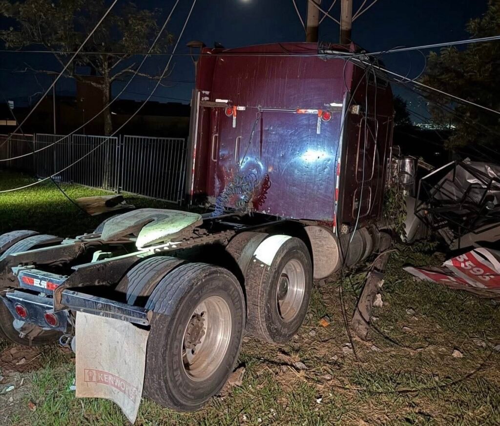Un aparatoso accidente se registró esta mañana sobre la Carretera de Oro, a la altura de la residencial Altavista, cuando el conductor de un cabezal perdió el control e impactó violentamente contra varios postes del tendido eléctrico.