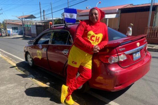 En el distrito de Santiago de María, Usulután Norte, un vehículo rojo con antenas y corazones no pasa desapercibido. Su propietario, Oswaldo Salamanca, de 51 años, se ha ganado el cariño de la población bajo el apodo de “El Chapulín Colorado”, gracias a la creativa personalización de su unidad de