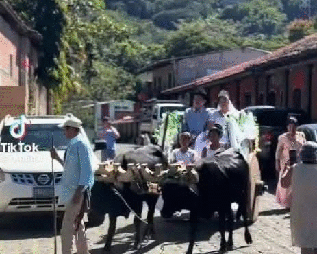 Una boda celebrada en Jocoaitique, Morazán, se volvió especial por rescatar una de las tradiciones más auténticas del oriente del país. En la secuencia de fotografías que circula, se observa a la novia acompañada de su padre, quien la lleva hasta la iglesia sobre una carretera y en una yunta