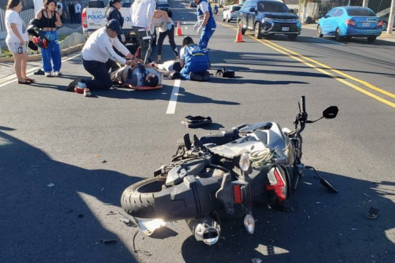 Un fuerte accidente de tránsito dejó a dos personas gravemente lesionadas este jueves en la avenida Bernal, en San Salvador. Según el informe preliminar de Cruz Verde, el percance ocurrió cuando un vehículo particular realizó un giro indebido sobre una doble línea amarilla, justo en el instante en que una