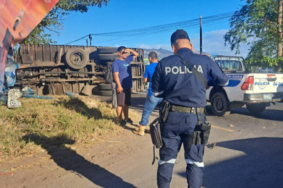 Un grave accidente de tránsito registrado en el kilómetro 34 de la carretera Panamericana, a la altura del distrito de Ciudad Arce, La Libertad, dejó como saldo cuatro personas lesionadas y cuantiosos daños materiales. De acuerdo con el reporte oficial de la Policía Nacional Civil (PNC), el percance fue provocado