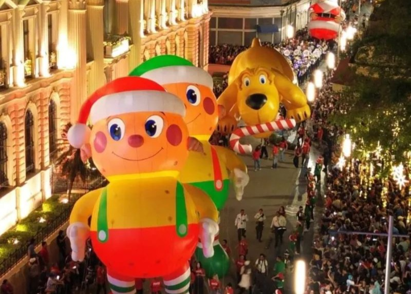 El desfile de globos gigantes se realizó el pasado domingo en una de las principales calles de la capital, recorriendo la calle Rubén Darío hasta llegar al corazón del Centro Histórico de San Salvador, donde miles de familias se congregaron para disfrutar de una tarde llena de magia, color y espíritu navideño.