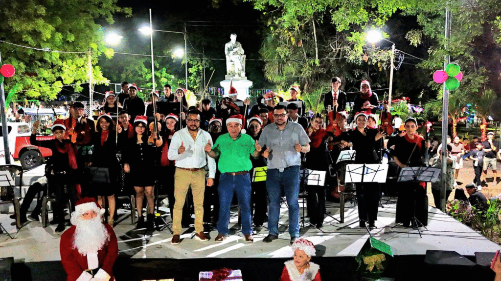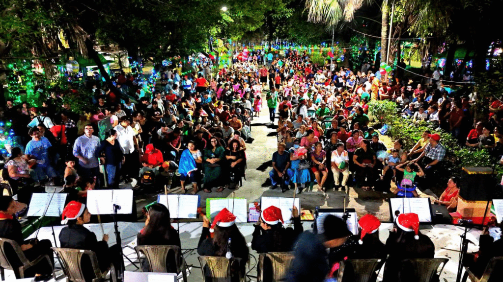 La jornada inició a partir de las 5:00 de la tarde y contó con la participación de los estudiantes de la Escuela de Música Reynaldo Carballo, quienes interpretaron un repertorio de villancicos como parte central del evento. El concierto fue presenciado por familias que se congregaron en el parque para disfrutar de las actividades programadas.