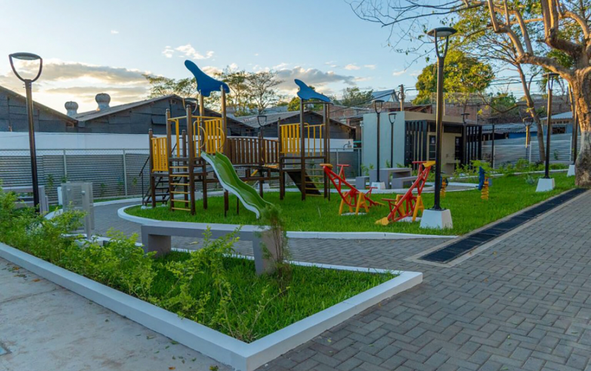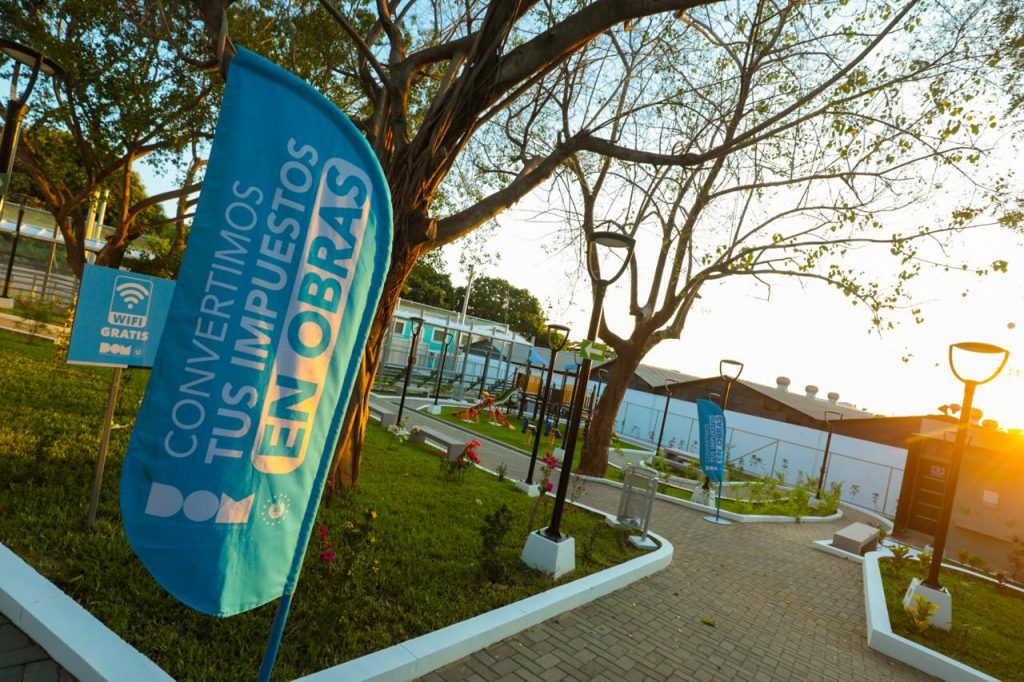Pensando en el desarrollo comercial y la comodidad de los visitantes, la DOM construyó un módulo con cinco locales comerciales, áreas de juegos infantiles con superficies antideslizantes, y zonas de descanso con mesas de concreto. La intervención también contempló mejoras técnicas críticas, como una planta de tratamiento, drenajes de aguas lluvias y la pavimentación de la calle que conecta con el mercado municipal.
