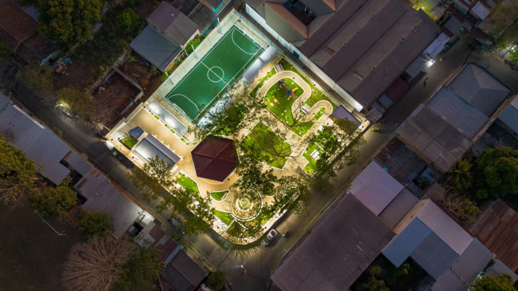 El proyecto abarca una extensión de 1,800 metros cuadrados y destaca por su enfoque multifuncional. Entre las principales atracciones se encuentra una cancha de fútbol rápido con grama sintética y moderna iluminación de seis torres, permitiendo su uso en horarios nocturnos. Además, la infraestructura incluye graderíos techados, una glorieta y una fuente ornamental con sistema automatizado.