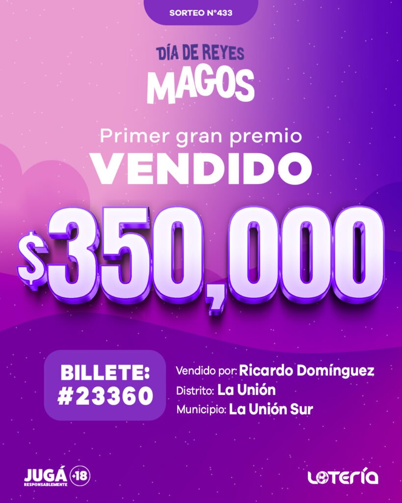 Primer Premio: $350,000 – Billete N.º 23360. Vendido.