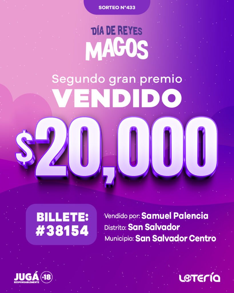 Segundo Premio: $20,000 – Billete N.º 38154. Vendido.