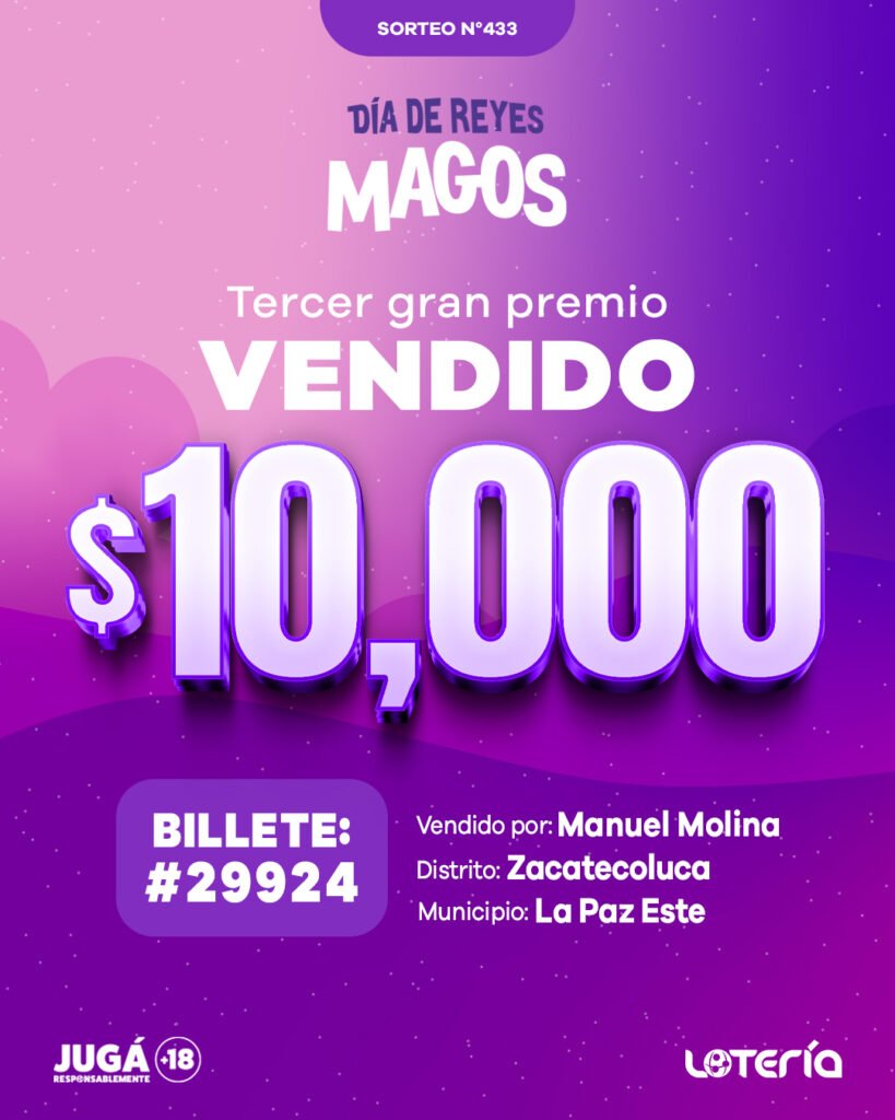 Tercer Premio: $10,000 – Billete N.º 29924. Vendido.