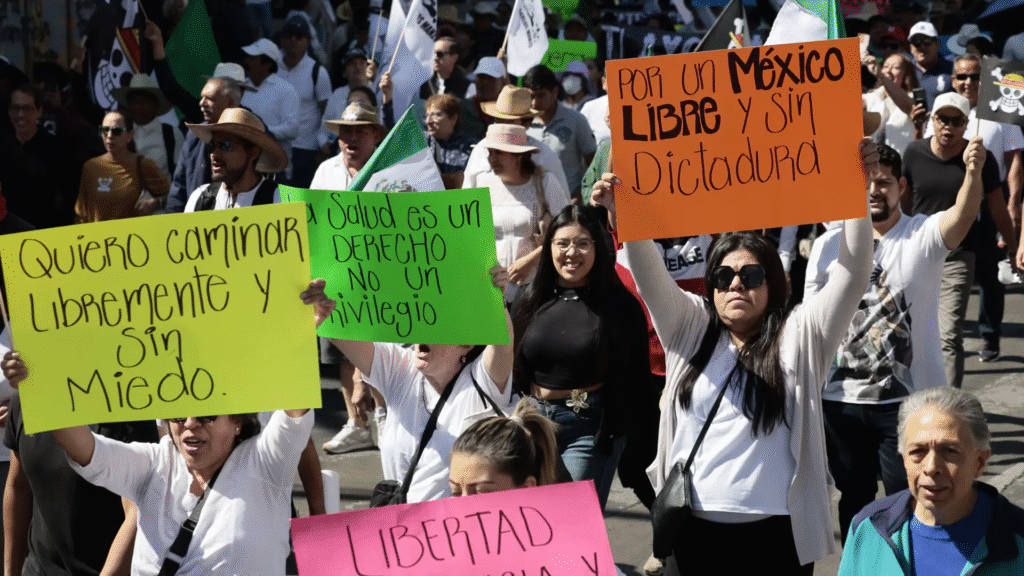 La presidenta Claudia Sheinbaum, con aprobación superior al 70%, condenó la violencia: “Nunca se debe usar la violencia para cambiar; siempre por la vía pacífica”. Minimizó la presencia juvenil —”había muy pocos jóvenes”— y acusó a la oposición de derecha, bots y campañas de desinformación con más de 90 millones de pesos, impulsadas por figuras como Vicente Fox y Ricardo Salinas Pliego. “Es una marcha falsa, inflada con cuentas falsas”, afirmó, cuestionando su legitimidad pese a reconocer el derecho a manifestarse.
