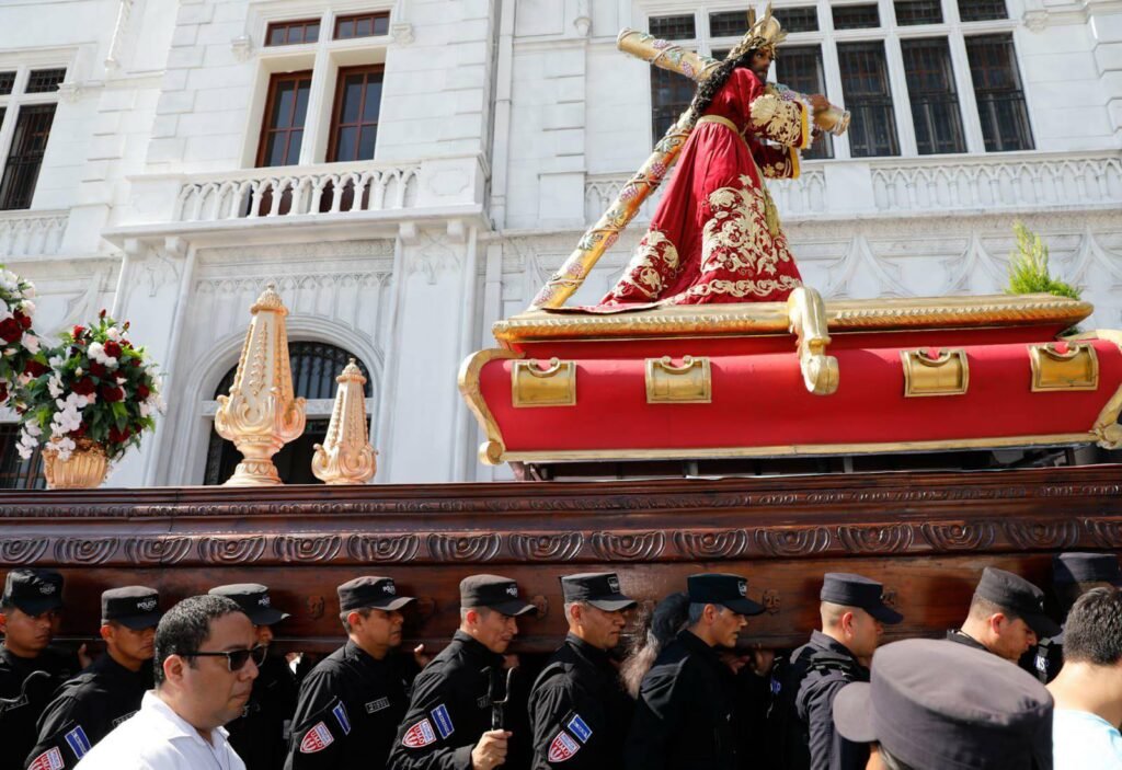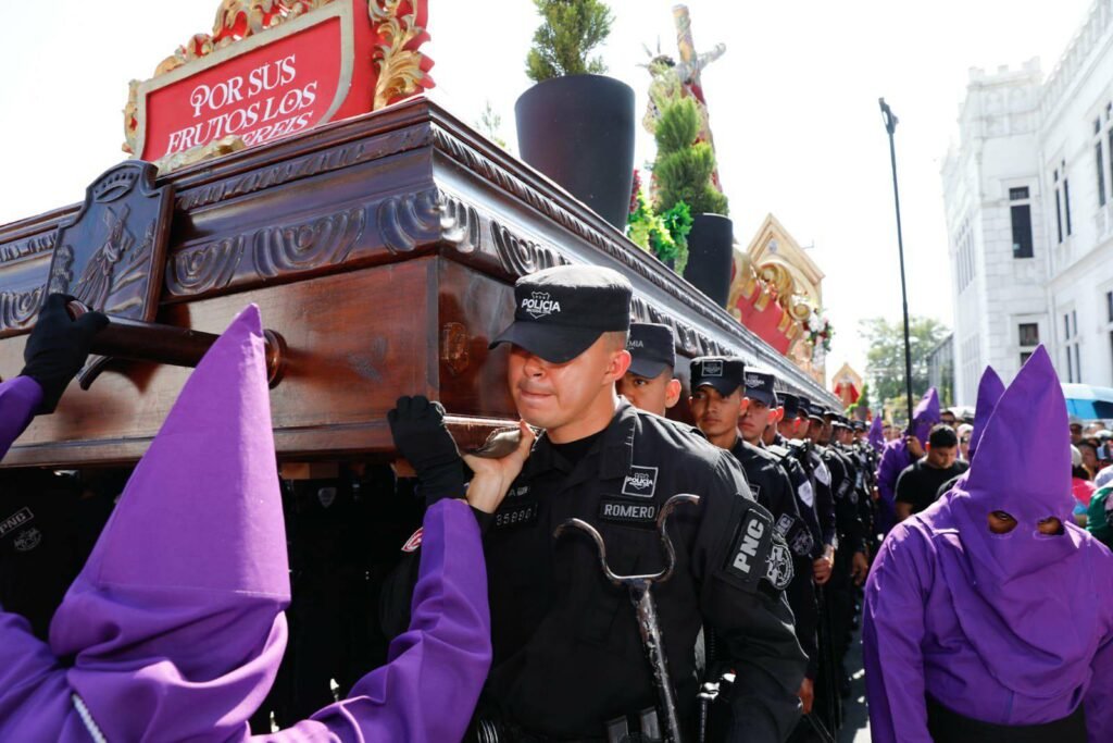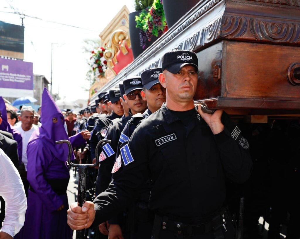 La Policía Nacional Civil (PNC) demostró una vez más que su misión en el país trasciende las labores de seguridad ciudadana. En un acto que combinó fe, respeto y servicio, un grupo de elementos policiales formó parte activa del Viacrucis Penitencial desarrollado en el corazón del Centro Histórico de San Salvador, sumándose a las tradiciones más sentidas de la Semana Santa.