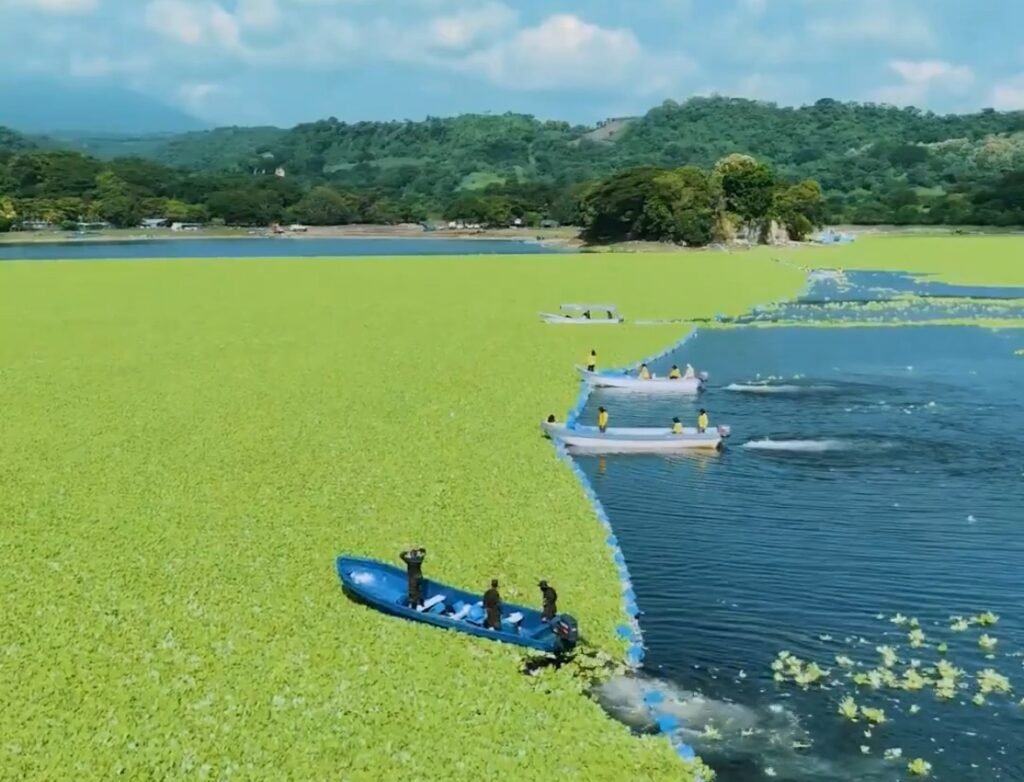 Luego de varios meses de intervenciones continuas, el lago Suchitlán —el espejo de agua más grande de El Salvador— muestra señales claras de recuperación gracias a las labores de limpieza y retiro de lechuga acuática que lo había invadido.