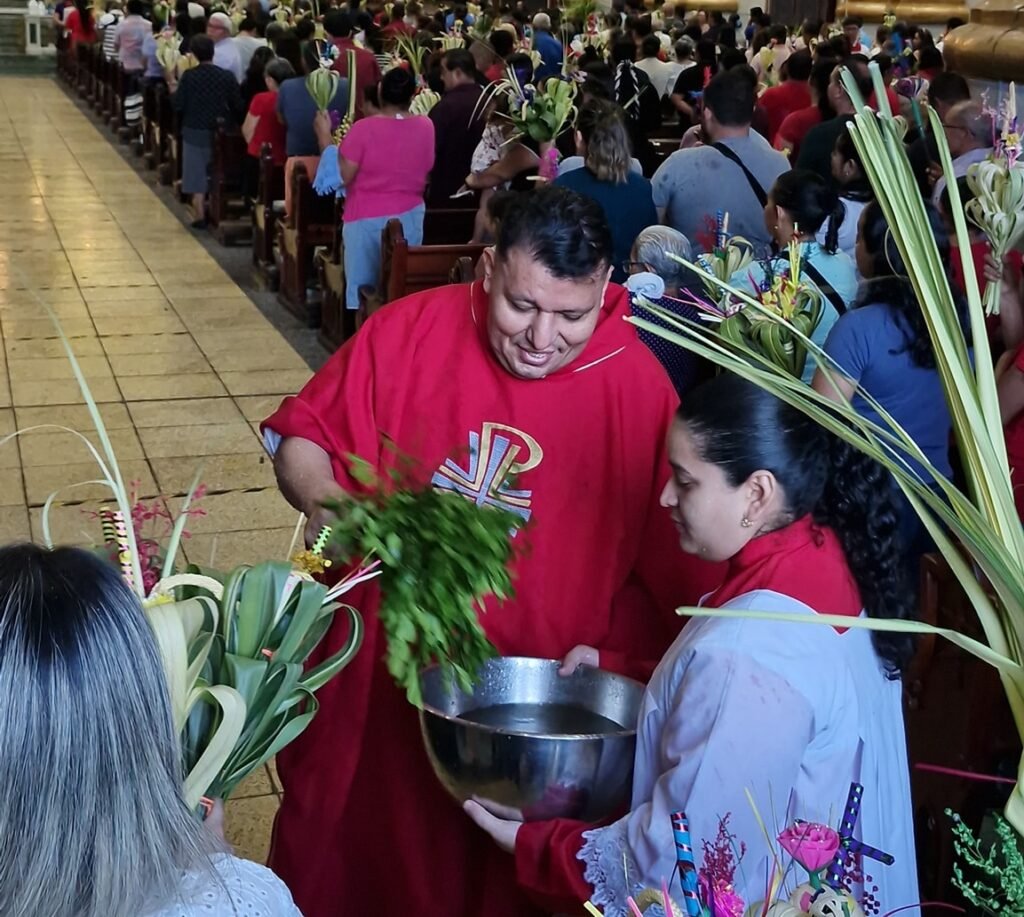 Ya en la Catedral, se llevó a cabo la Misa de bendición de ramos, presidida por Monseñor Fabio Reynaldo Colindres Abarca, en un acto que fusiona la fe católica con la profunda identidad cultural de la región.